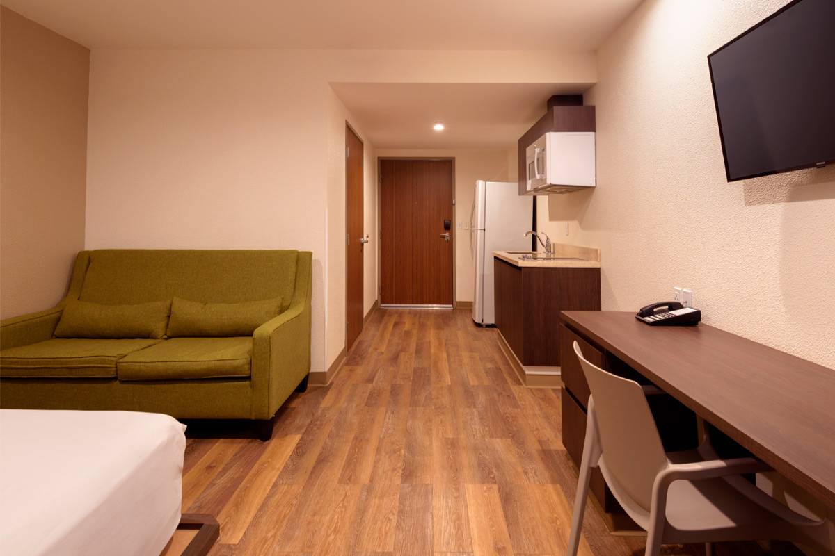 Extended Suites Mexicali Cataviña Hotel is a leading hotel center in the concept of long stays in Mexico. The suites we have are larger than the conventional rooms of other hotel establishments. Each suite has everything necessary to ensure comfortable and safe work, always with the best guaranteed conditions. Our location allows you to access recreation areas and places to spend pleasant afternoons and evenings.